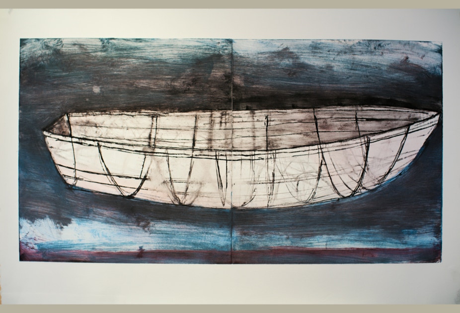 My interest in the Irish Currach came about in 2017 while on a one month residency at the Cill Railaig Foundation on the western coast of Ireland. A Currach was stored behind my studio which was situated on a cliff overlooking the Atlantic. These small and sturdy hand made utility boats have plowed the waters of Ireland Since 300 AD.