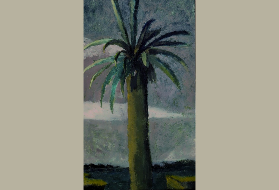 Landscapes often come from childhood memories growing up in the tropics in a chaotic family environment. Quite often a house metaphor appears among the palm trees and a moody southern sky. These images often morph from memory to dream to nightmare, and from serene to chaotic.